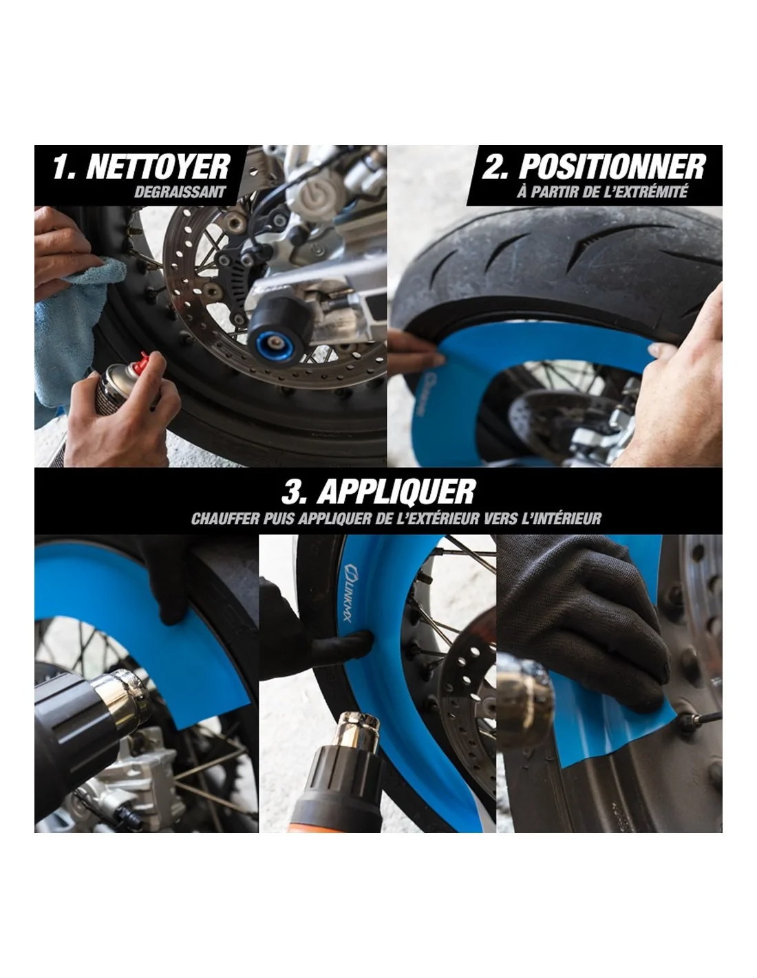 1- Die Aufkleber sind so konzipiert, dass sie halbe Felgen erzeugen; Sie können damit auch eine vollständige Felge herstellen, allerdings wird die Verbindung aufgrund von Verformungen während des Anbringens nicht perfekt sein.