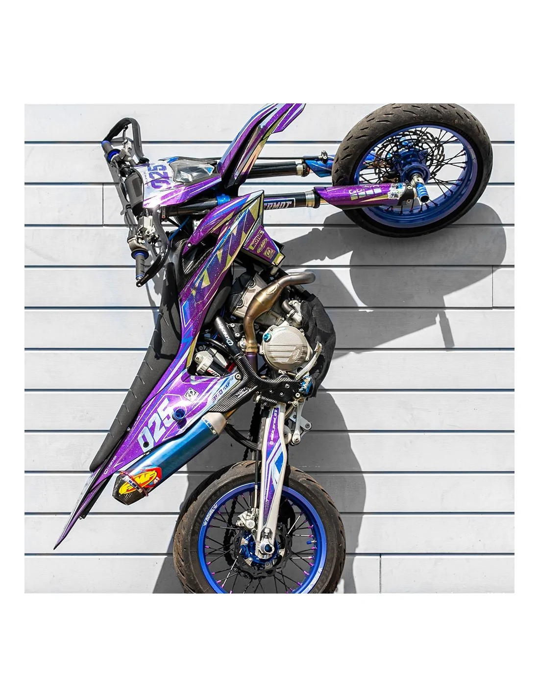 Frontplatte | 2x Kühlerentlüftungen | 2x Seitennummerntafeln | 2x Luftfilterkästen | Vorderradkotflügel | Hinterradkotflügel | 2x Gabelschützer | 2x Schwingenaufkleber | Tankaufkleber (nach unseren Vorlagen).Bereiten Sie die Installation Ihres Dekorationssets vor.