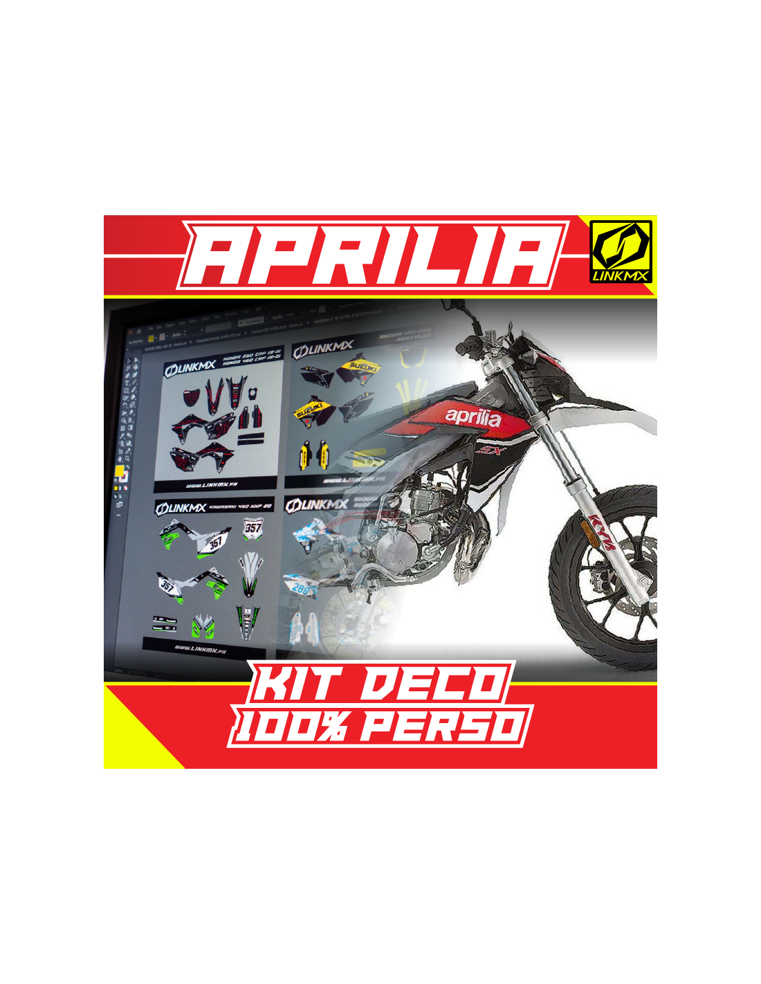 LinkMX Serie – 100% personalisiertes Dekorationsset, eine individuelle Grafikgestaltung für Ihren APRILIA!