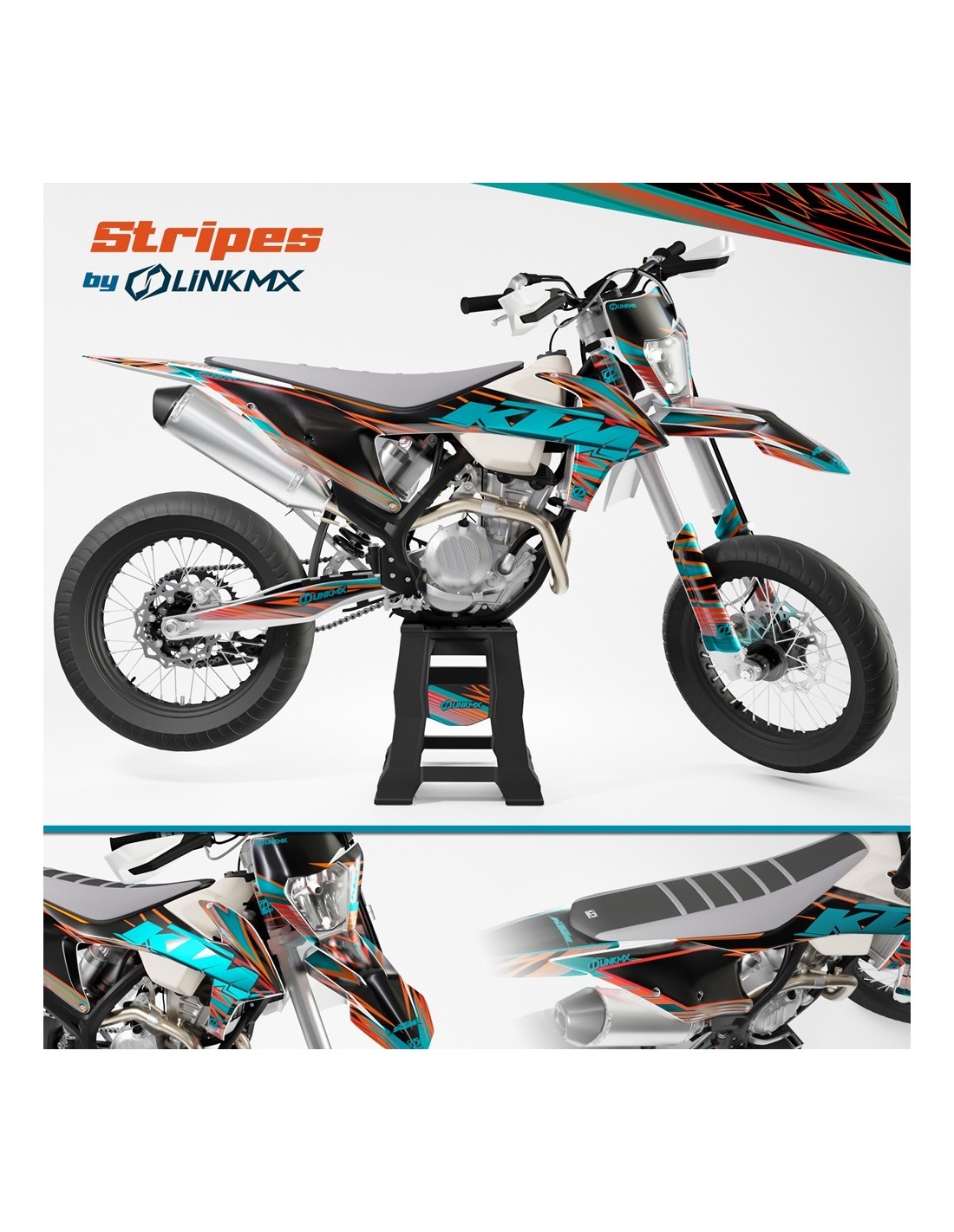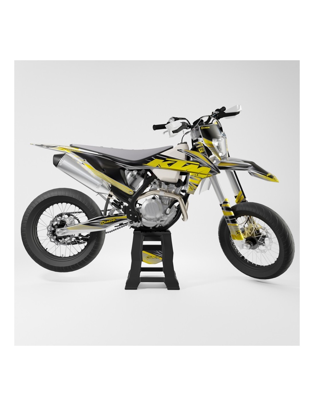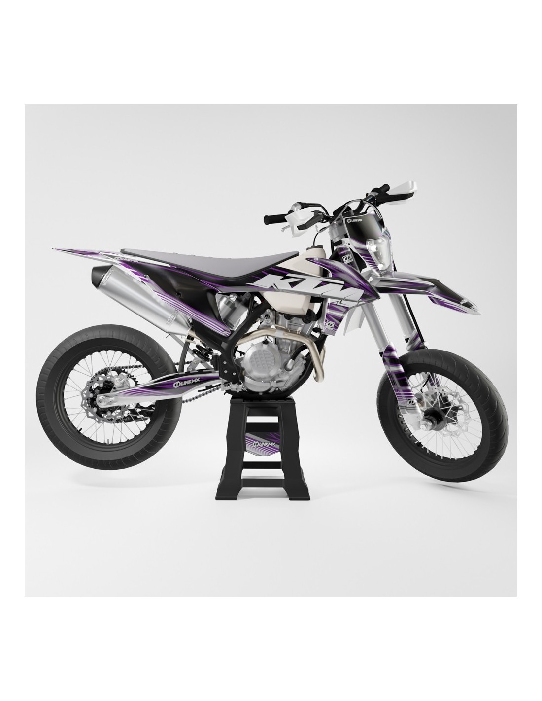 Frontplatte | 2x Kühlerentlüftungen | 2x seitliche Nummernschilder | 2x Luftfilterkästen | vorderer Kotflügel | hinterer Kotflügel | 2x Gabelschützer | 2x Schwingenaufkleber | Tankaufkleber (falls wir die Vorlage haben).Bereiten Sie die Installation Ihres Dekorationssets vor.
