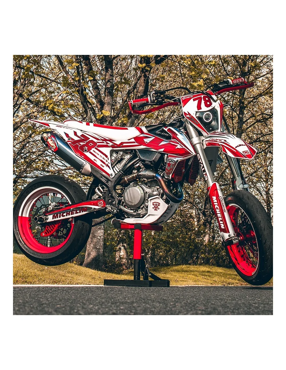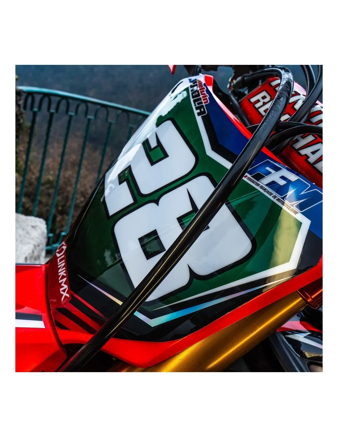 GRAPHIC KIT AND STICKER BY PLASTICS AND COMPONENT100% custom radiator vents€48.00100% custom side panels€48.00100% custom front fender€29.00100% custom rear fender€29.00100% custom swingarm€29.00Custom 50cc exhaust sticker€29.00Sticker FMF 4T 100% perso€29.00Sticker AKRAPOVIC 100% perso€25.00HGS Sticker, Custom Color€25.00Sticker HGS 100% perso€29.00Stickers jante SM 100% perso€60.00100% custom MX rim stickers€45.00Stickers cadre 100% perso€29.00KTM pannier sticker kit€115.00