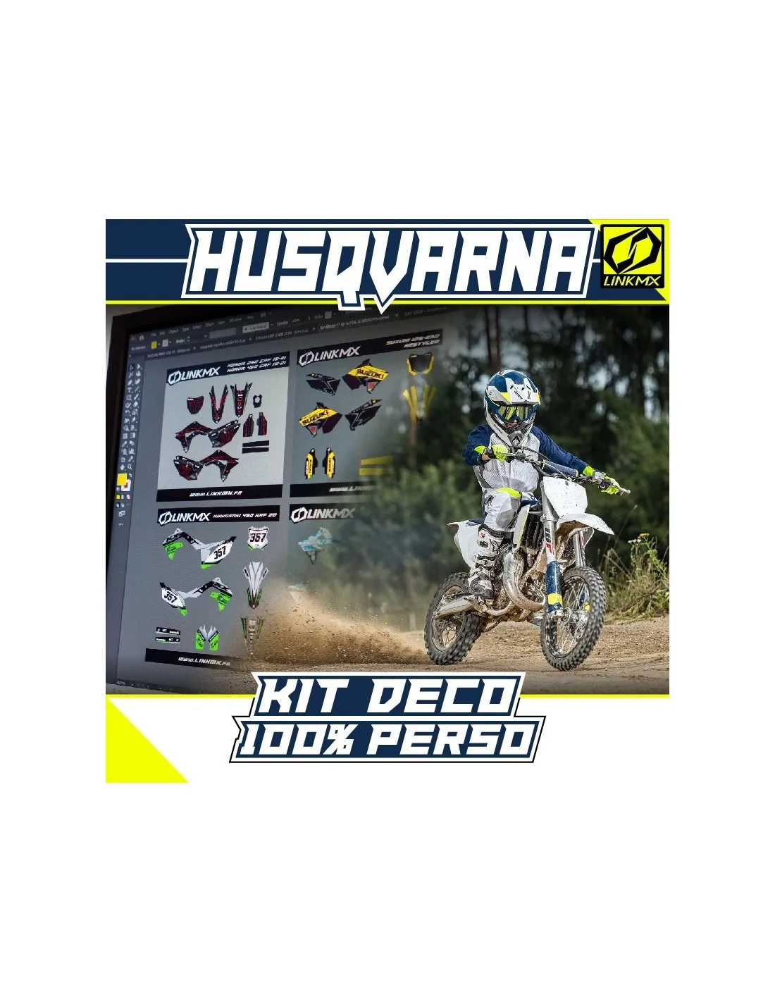 100% personalized LinkMX Series graphics kit, a custom graphic design for your HUSQVARNA!