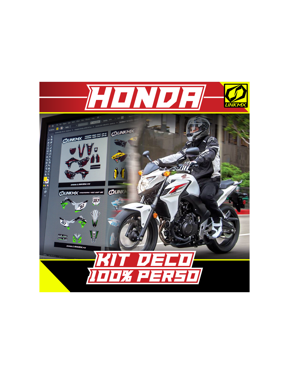 LinkMX Series 100% personalized graphics kit, a custom graphic design for your HONDA!