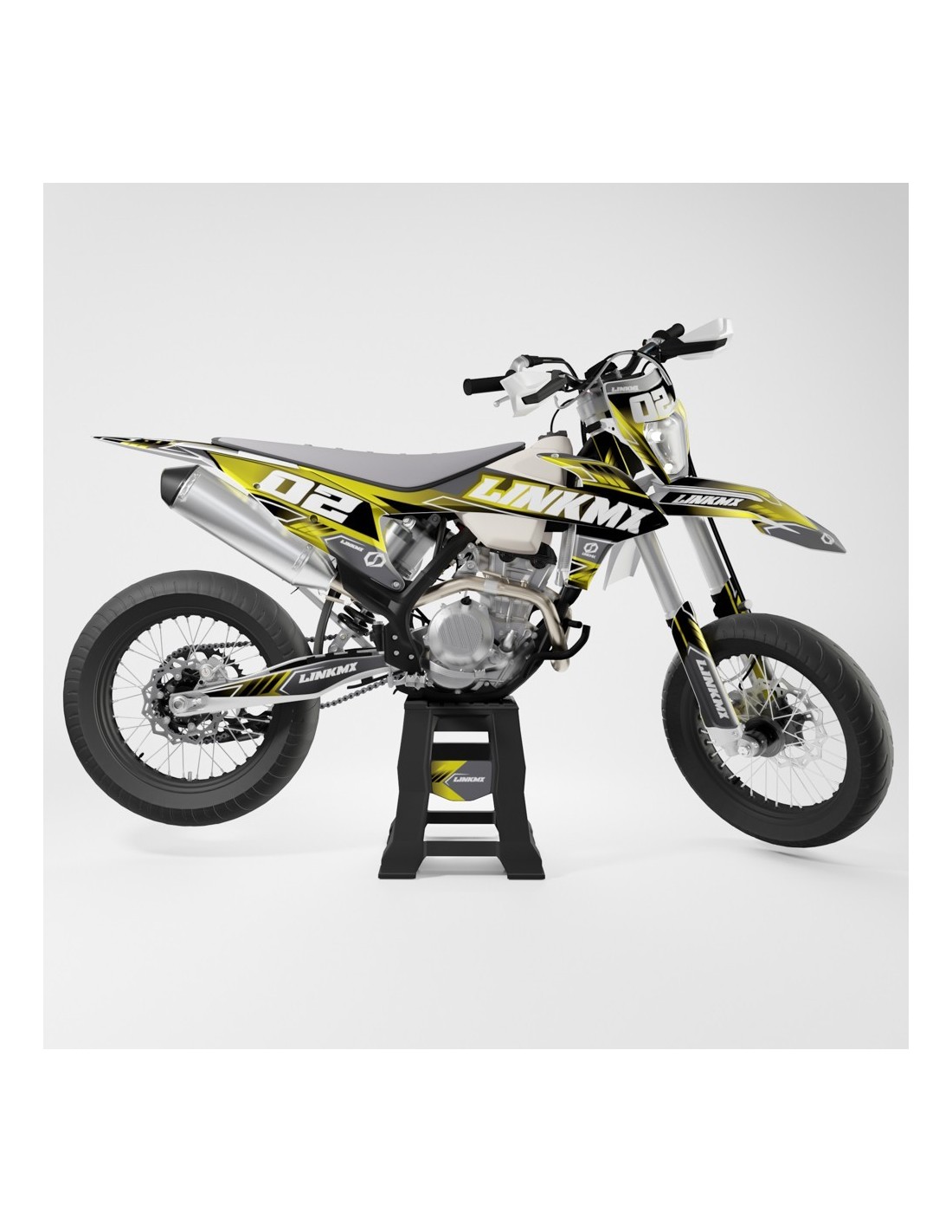 Front plate | 2x radiator vents | 2x side number plates | 2x air boxes | front fender | rear fender | 2x fork guards | 2x swingarm stickers | tank sticker (if we have the template).Prepare for the installation of your decoration kit