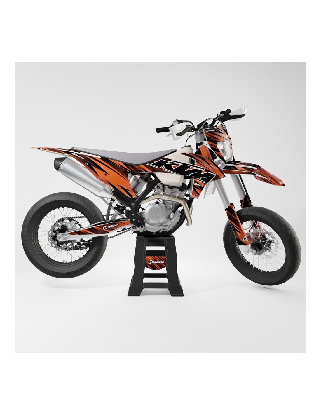 Front plate | 2x radiator vents | 2x side number plates | 2x air boxes | front fender | rear fender | 2x fork guards | 2x swingarm stickers | tank sticker (if we have the template).Prepare for the installation of your decoration kit