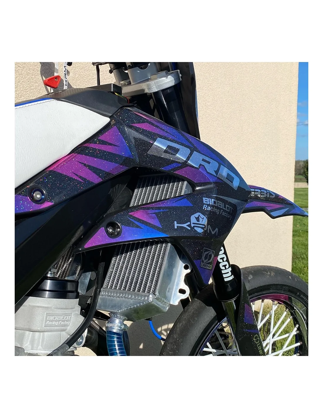Placa frontal | 2 rejillas de ventilación del radiador | 2 placas laterales para números | 2 cajas de aire | guardabarros delantero | guardabarros trasero | 2 protectores de horquilla | 2 adhesivos para el basculante | adhesivo para el depósito (según nuestras plantillas).Prepárate para la instalación de tu kit de decoración