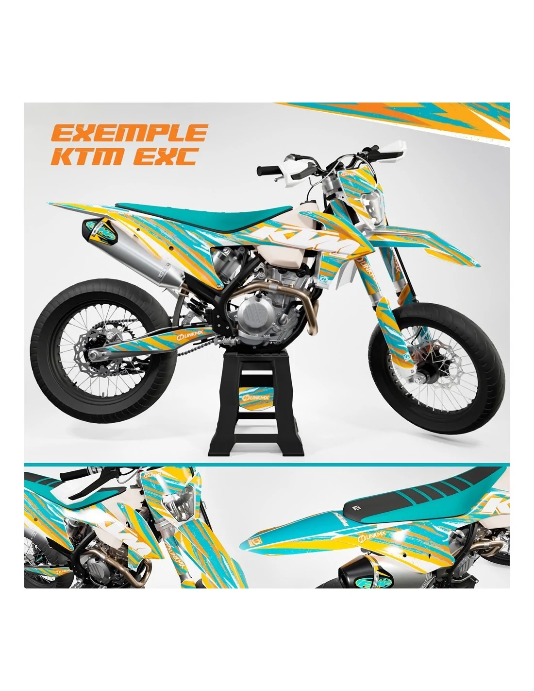 Placa frontal | 2 rejillas de ventilación del radiador | 2 placas laterales para números | 2 cajas de aire | guardabarros delantero | guardabarros trasero | 2 protectores de horquilla | 2 adhesivos para el basculante | adhesivo para el depósito (si disponemos de la plantilla).Prepárate para la instalación de tu kit de decoración
