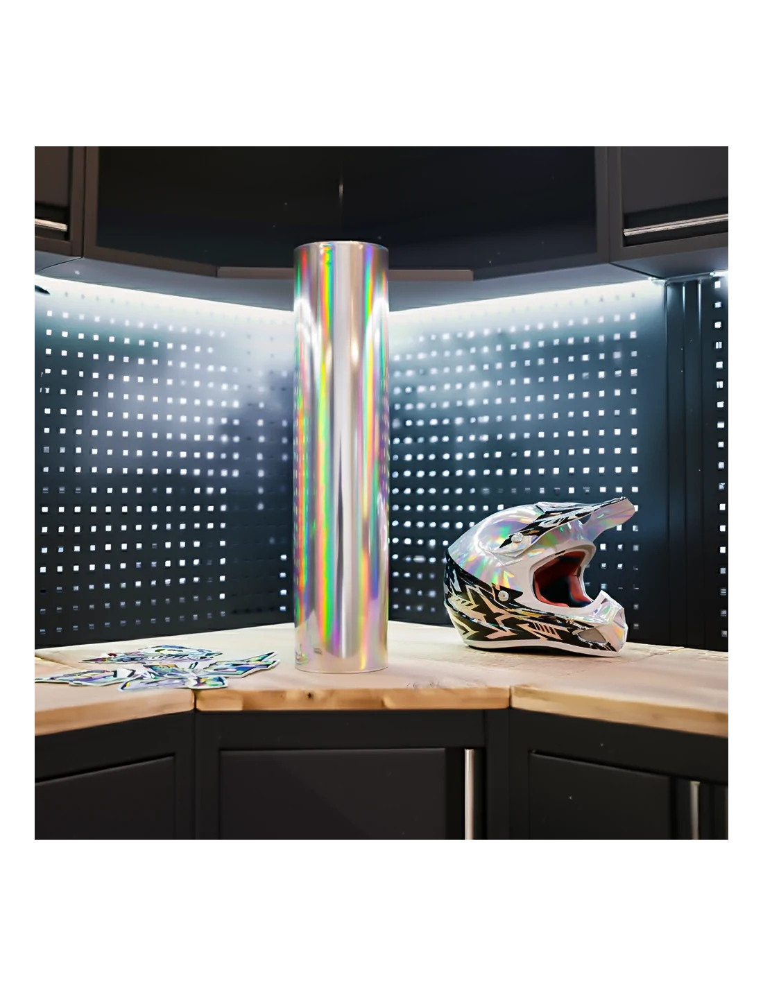 Effet holographique éclatant et colle forte repositionnable, conçue pour les poses sur formes complexes type moto de route, casque moto ou la réalisation de stickers durables. Installation facile et sans bulles. Support papier blanc sans marquage, idéal pour la revente. Le meilleur rapport qualité/prix du marché.