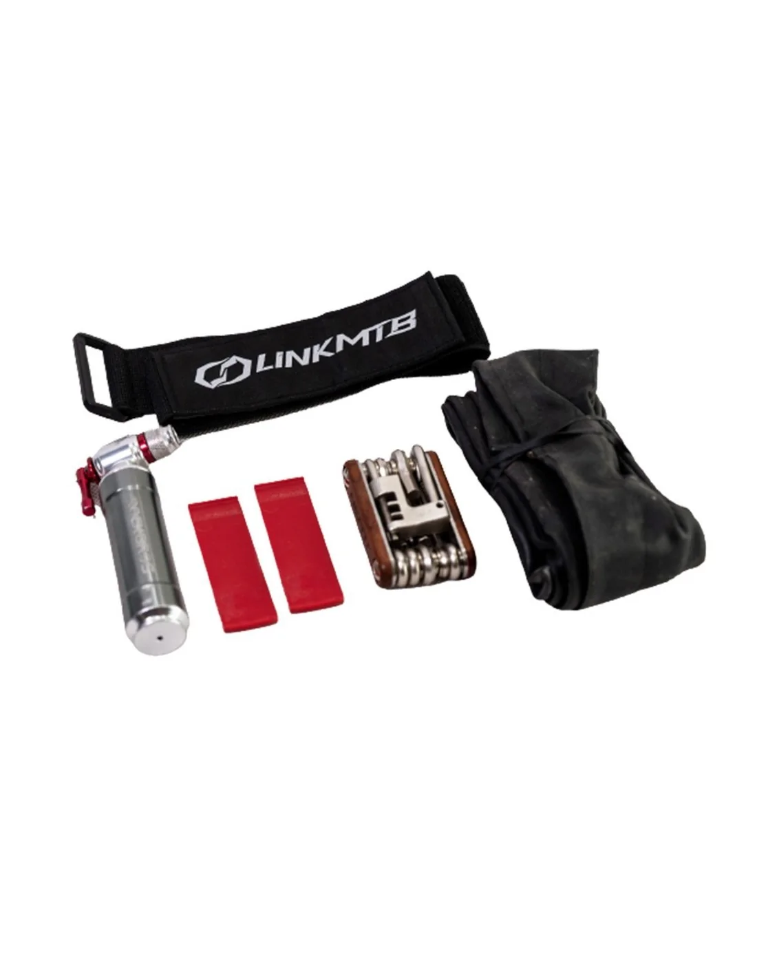 La nostra cinghia a strappo è progettata per fissare la maggior parte della tua attrezzatura (camera d'aria, gonfiatore di CO2, leve per pneumatici, ecc.) e si adatta a diversi spessori di telaio per MTB ed E-bike.