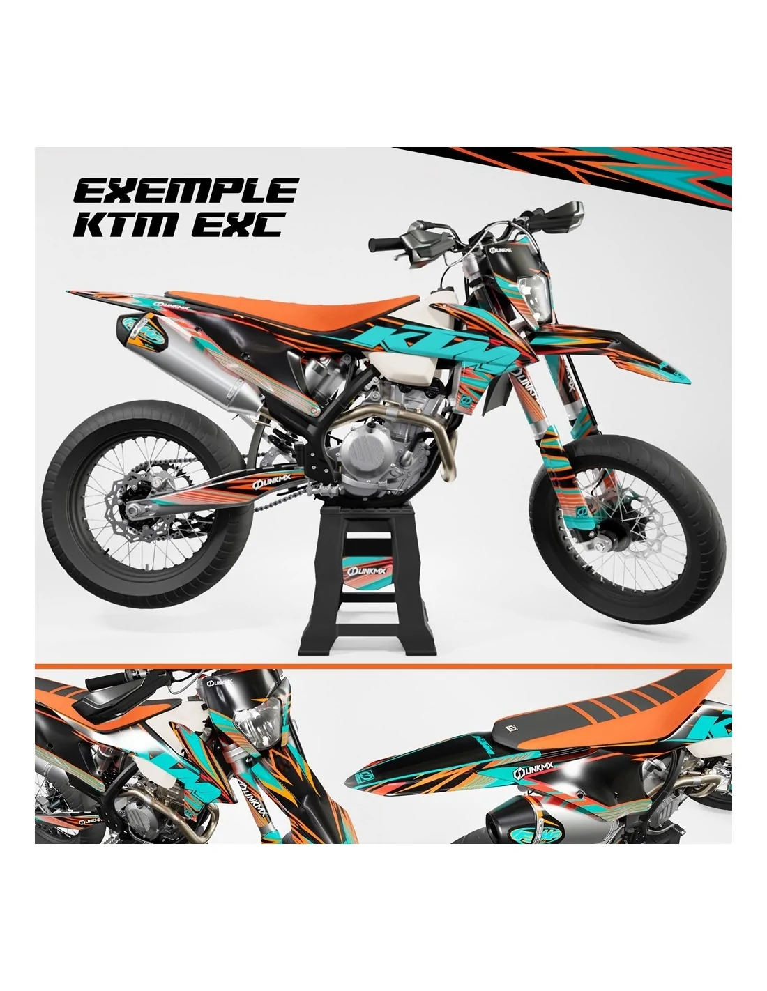 Targa anteriore | 2 prese d'aria del radiatore | 2 targhe laterali | 2 air box | parafango anteriore | parafango posteriore | 2 protezioni forcella | 2 adesivi forcellone | adesivo serbatoio (se abbiamo il modello).Preparati per l'installazione del tuo kit di decorazione