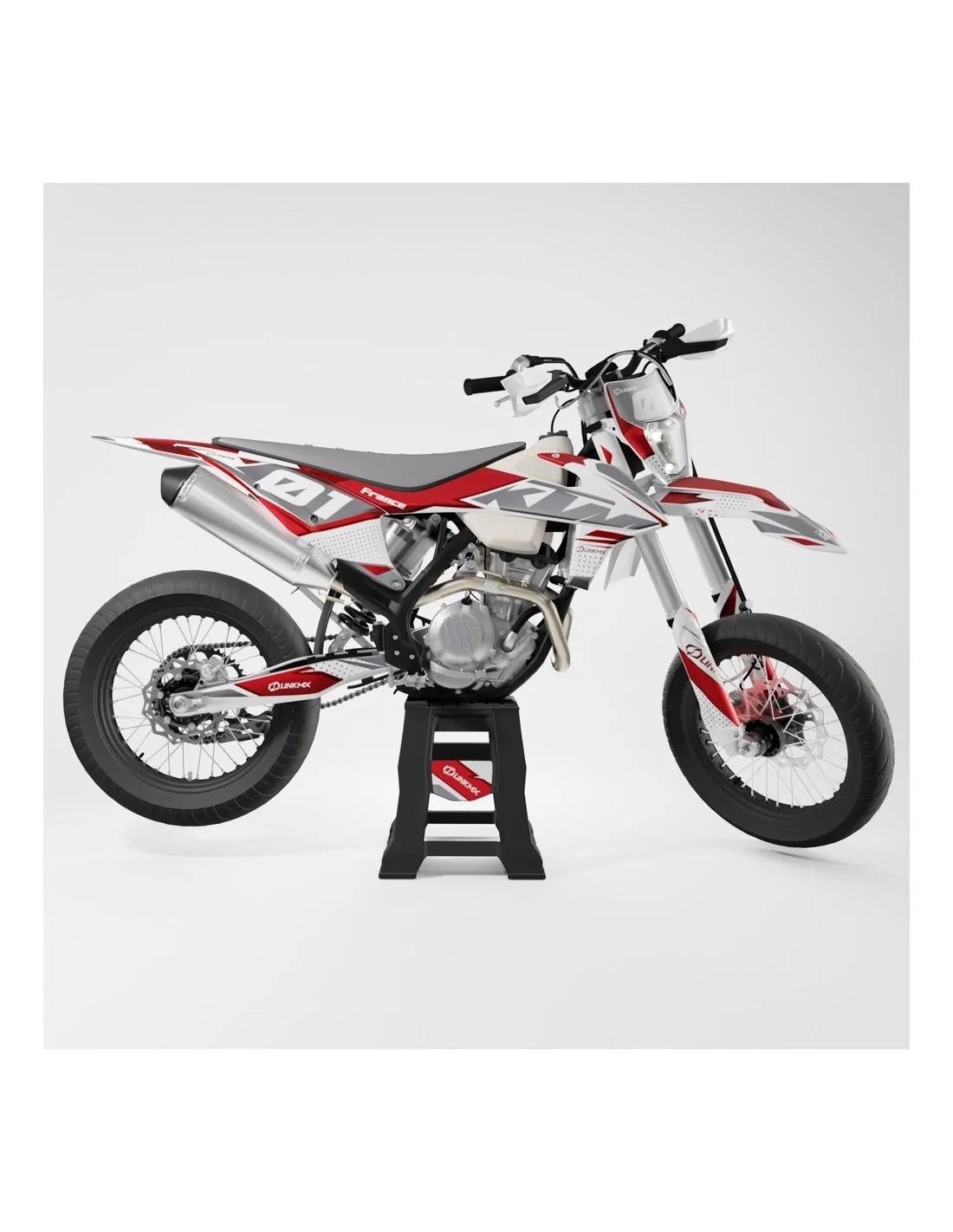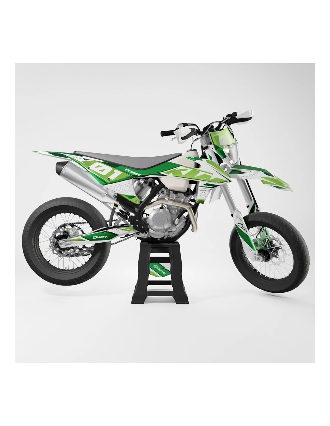 Targa anteriore | 2 prese d'aria del radiatore | 2 targhe laterali | 2 air box | parafango anteriore | parafango posteriore | 2 protezioni forcella | 2 adesivi forcellone | adesivo serbatoio (se abbiamo il modello).Preparati per l'installazione del tuo kit di decorazione